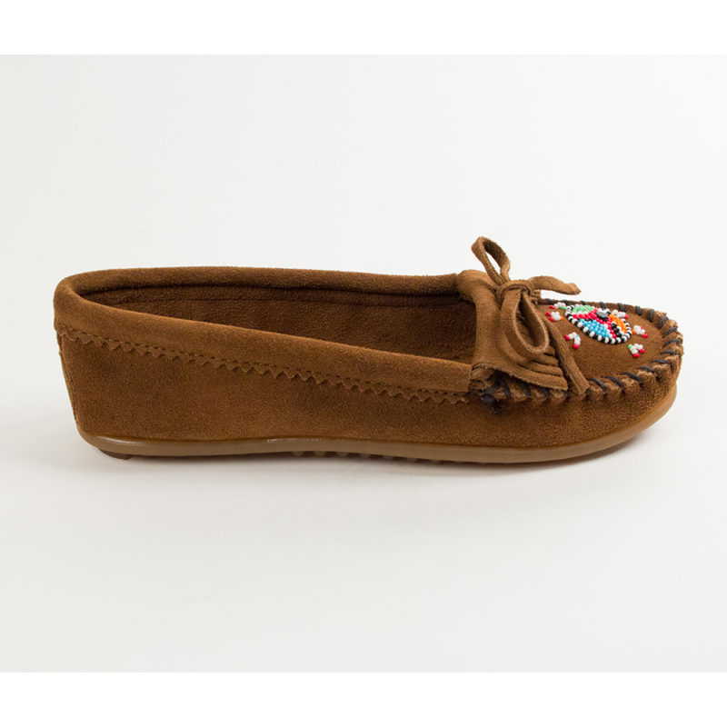 Minnetonka Damen Mokassins “ME TO WE MOCCS” aus Wildleder mit Perlenstickerei – Dunkelbraun | Gr. 36