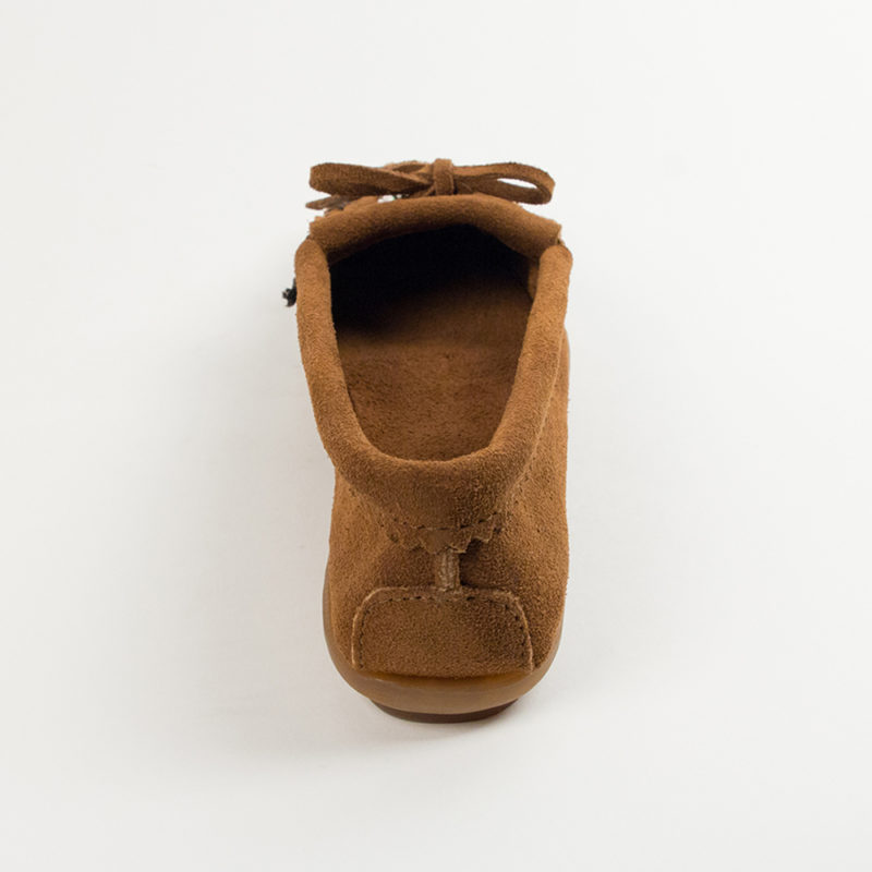 Die Herstellung dieser leichten Minnetonka Mokassins aus Wildleder erfolgt in Partnerschaft mit der Initiative Me To We, die weltweit soziale Projekte unterstützt.Die Perlenstickerei auf dem Vorderblatt wird handgefertigt von Frauen/Müttern der Massai in Kenia, die, in kleinen Gruppen organisiert, durch diese künstlerische Arbeit das Leben ihrer Familien selbst finanzieren können. Das Design der Perlen basiert auf traditionellen, über Generationen überlieferten Mustern.